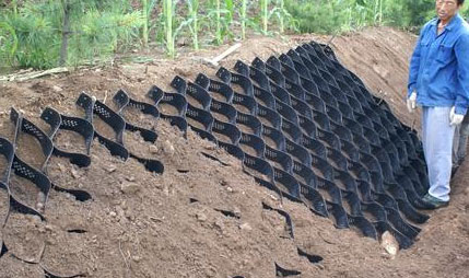 土工格室是由高強度的HDPE或PP寬帶或土工帶,經過焊接(或扣接)而形成的蜂窩狀立體網格結構。它伸縮自如,運輸時可縮疊起來,使用時張開并充填土石或混凝土,構成具有強大側向限制和大剛度的結構體。